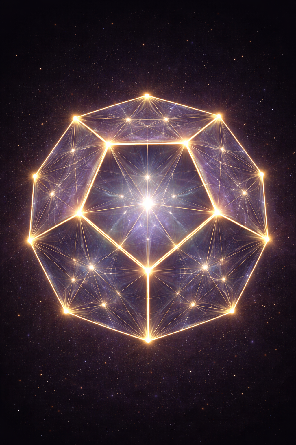 Where the Third Eye’s truncated icosahedron represents distributed perception and multi-perspective cognition, the truncated dodecahedron represents field coherence. It is less about seeing patterns and more about stabilizing within the field those patterns arise from. The Crown does not sharpen interpretation. It softens identification. It allows you to participate in a larger intelligence without losing structural integrity.